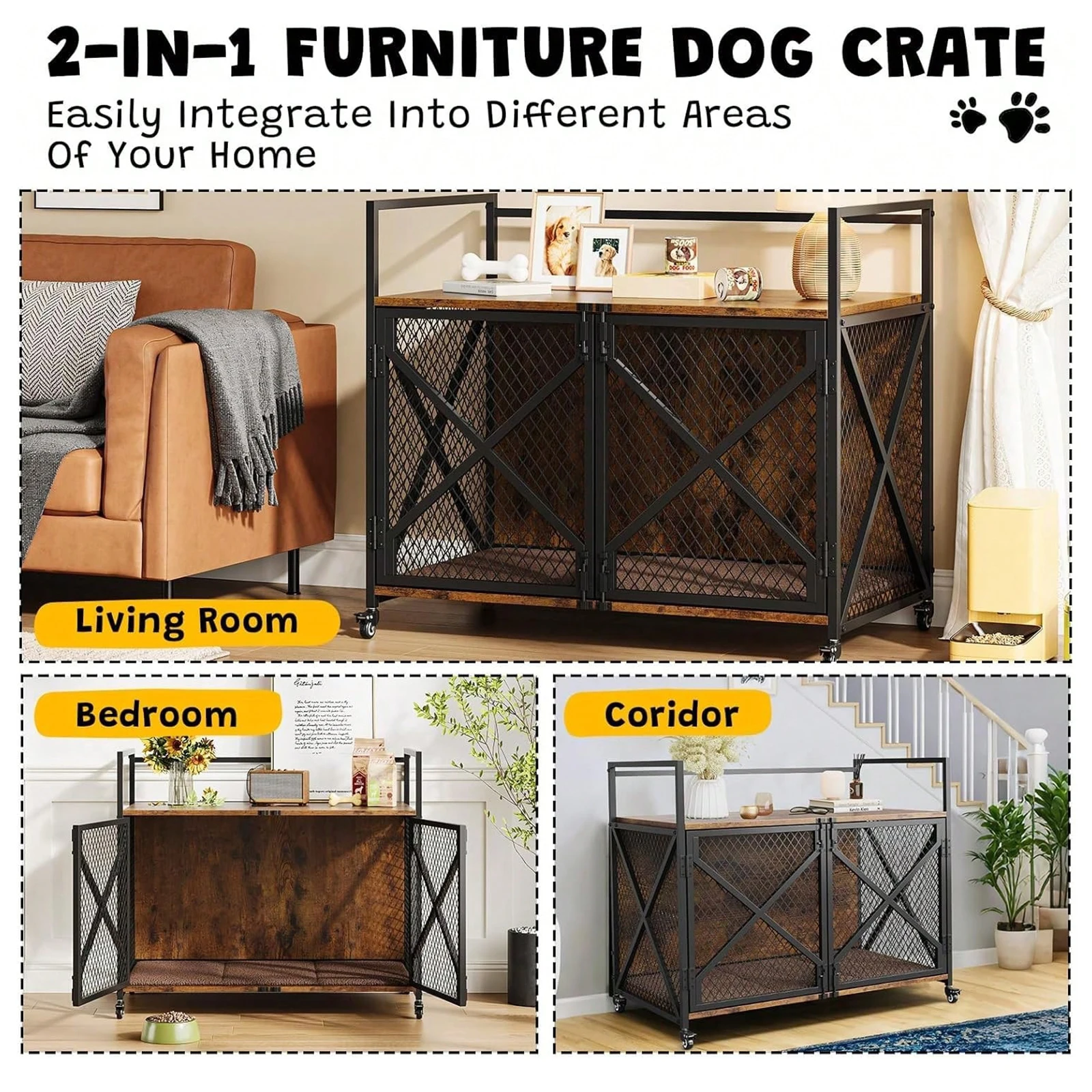 Lockable wheels for easy mobility: This dog crate is equipped with lockable wheels and can be easily moved around your home, providing flexibility in placement.
